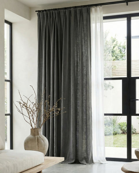 Graphite natural linen curtains, thick drapes - 1 panel