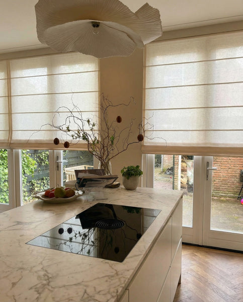 At VANLINNEN, we create custom Roman blinds from 100% natural linen, tailored to your window and finished with a clean, timeless look.
