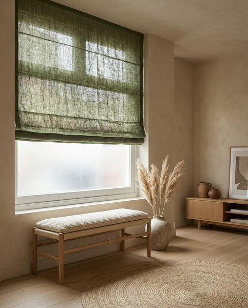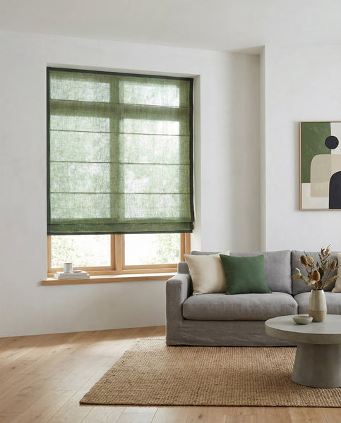 At VANLINNEN, we create custom Roman blinds from 100% natural linen, tailored to your window and finished with a clean, timeless look. Many different Green colours available on request.