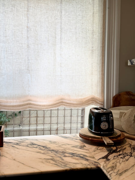 At VANLINNEN, we create custom Roman blinds from 100% natural linen, tailored to your window and finished with a clean, timeless look. Many different colours available on request.