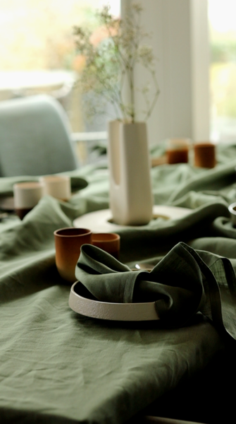 Tablecloth from soft olive linen. Tablecloth is made from stonewashed soft European linen. Flax is a natural and environmentally friendly product.