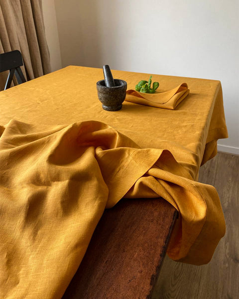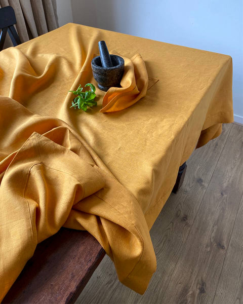 The tablecloth is made from softened European linen. Flax is a natural and environmentally friendly product.