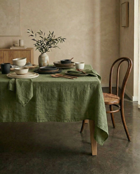 Tablecloth from soft olive linen. Tablecloth is made from stonewashed soft European linen. Flax is a natural and environmentally friendly product.
